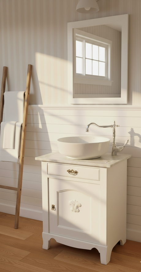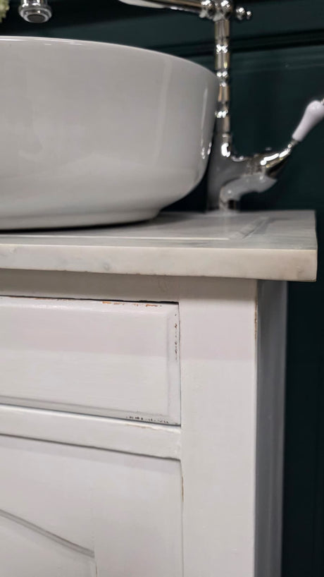 "Camille" weißer Landhaus Waschtisch mit Aufsatzwaschbecken 80/90 cm