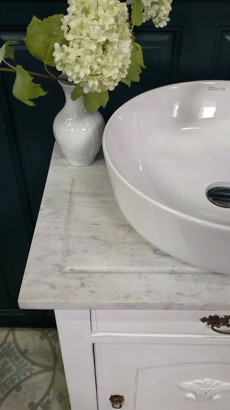 "Meline" kleiner Landhaus-Waschtisch mit heller Marmorplatte 45 cm