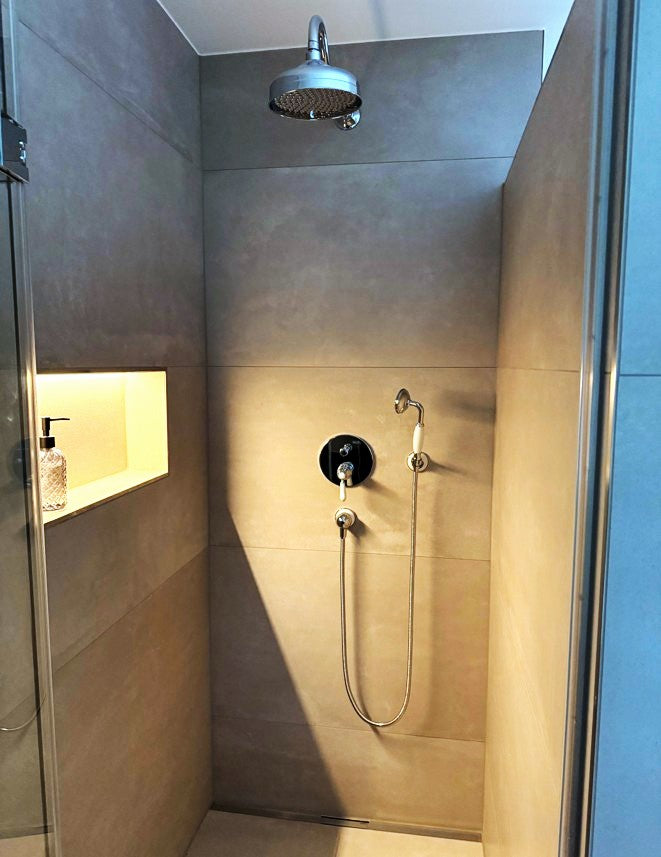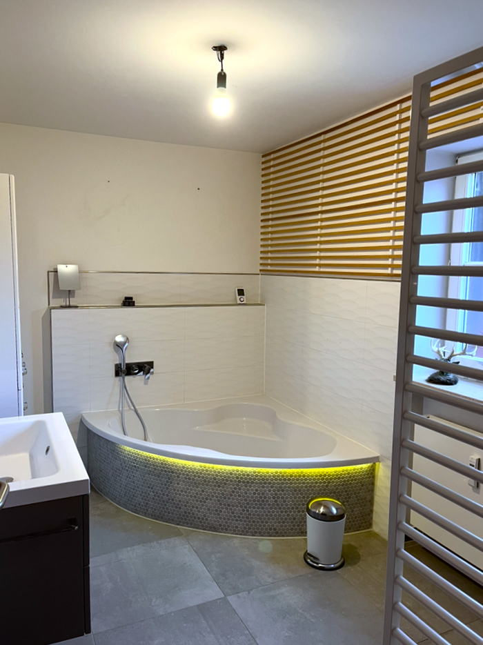 Die Kund:innen sind mit ihrem neuen Bad rundum zufrieden – lediglich eine kleine Sitzmöglichkeit fehlt noch, um das Konzept komplett zu machen. Die liebevolle Planung, kombiniert mit der natürlichen Ausstrahlung der Möbel, zeigt: Auch kleine Bäder können zu großen Wohlfühlräumen werden.