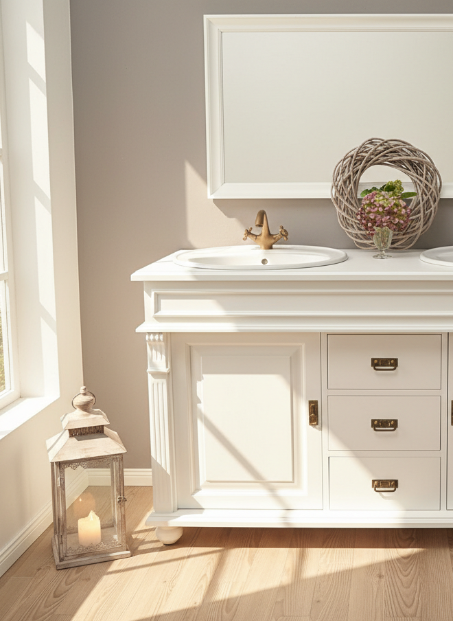 Die passende Armatur, Spiegel, nostalgische Handtuchstangen und weitere Badezimmeraccessoires finden Sie unter "Zubehör". Schönes für den Wohnbereich finden Sie unter "Landhausmöbel".