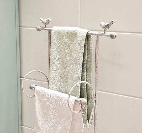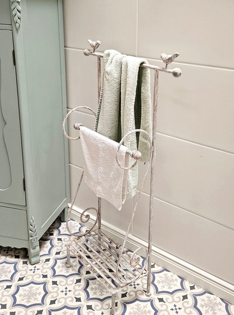 Handtuchhalter im Bad dienen zum bequemen Aufhängen und Trocknen von Handtüchern. Wir bieten Ihnen eine kleine Auswahl an stehenden Handtuchhaltern in weiß und schwarz, welche einen antik-nostalgischen Eindruck erwecken. Ob elegant oder shabby, ist er die passende Ergänzung zu Ihrem Waschtisch im Gäste WC oder Landhaus-Badezimmer.