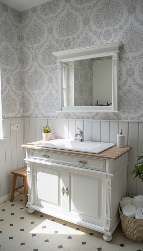 "Nélois" Landhaus-Waschtisch-Unterschrank mit vollabdeckendem Waschbecken 65 cm