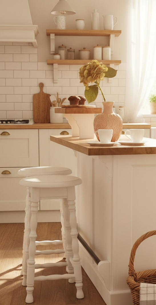 Die Kücheninsel im Landhausstil bietet nicht nur zusätzlichen Stauraum und Arbeitsfläche, sondern fungiert auch als gemütliche Frühstücksecke und sozialer Treffpunkt in Ihrer Küche. Hier können Sie gleichzeitig kochen und quatschen, was das gemeinsame Kocherlebnis noch schöner macht.