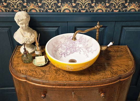 Florales Keramik Aufsatzbecken "Jaune"