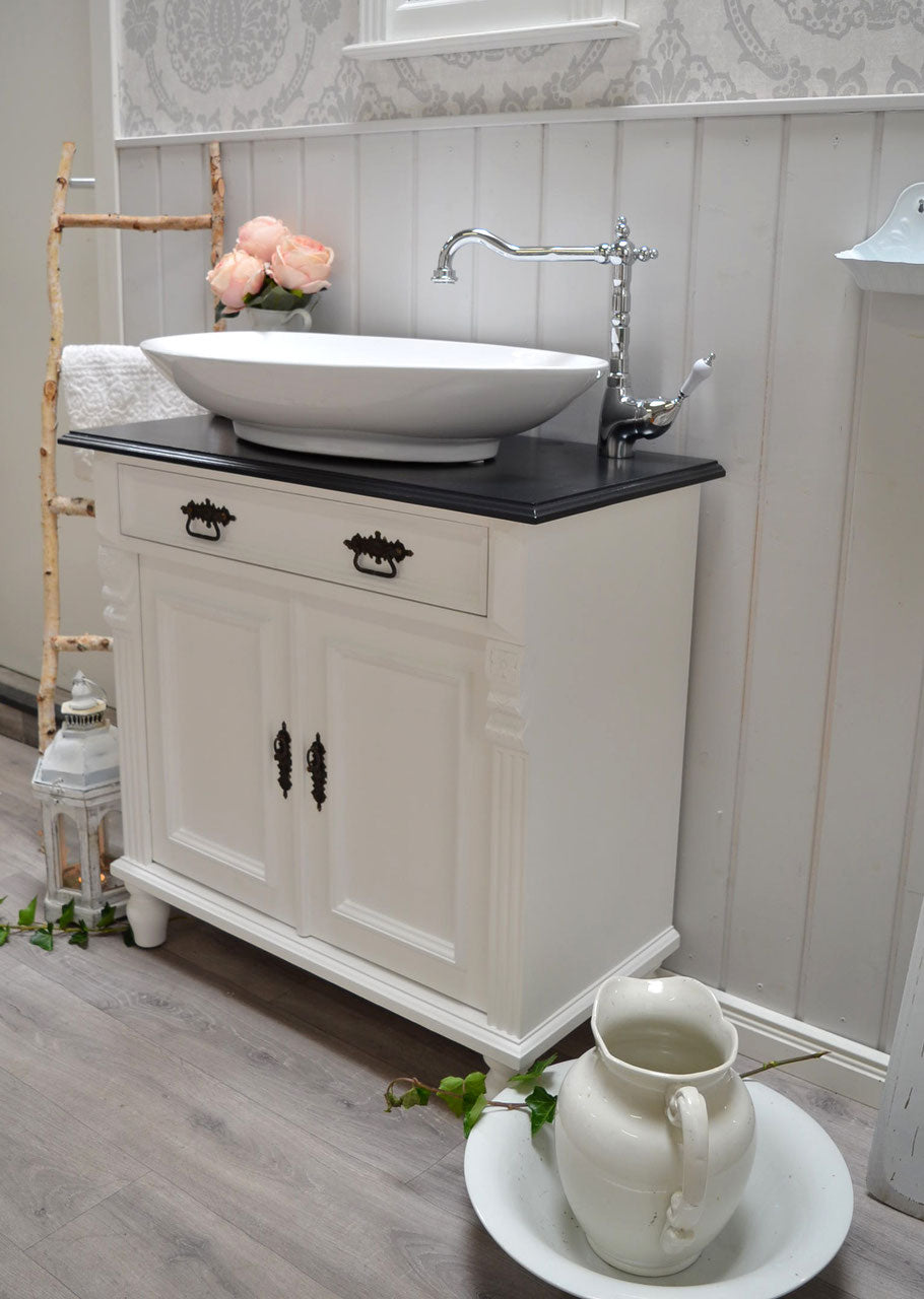 "Océane" Landhaus-Waschtisch schwarz-lackierte Tischplatte 80 cm