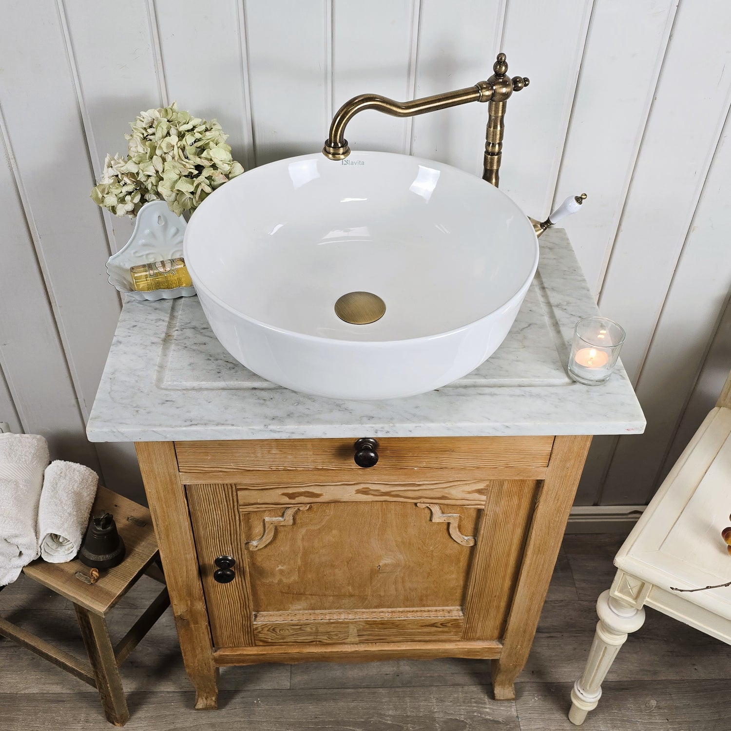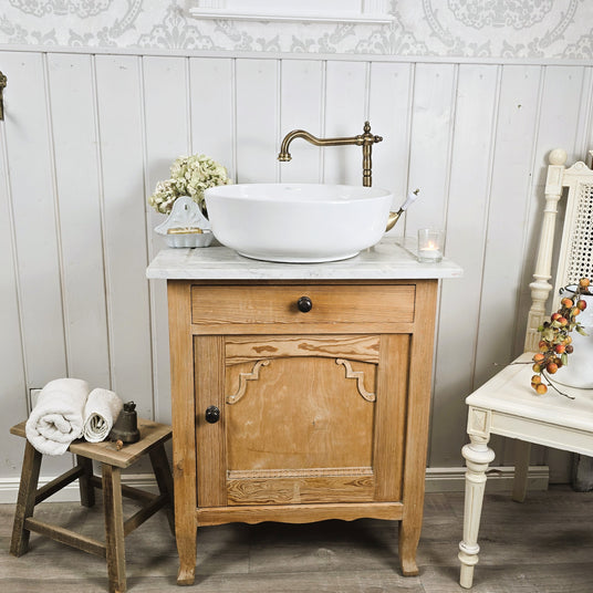 Unser Waschtisch ist ein echtes Unikat. Ursprünglich als antike Kommode zu uns gekommen, wurde sie in unserer Manufaktur zu einem echten vintage Waschtisch umgewandelt. Dabei achten wir besonders darauf, die Geschichte der Kommode zu bewahren. Um den nostalgischen Vintage-Charme zu erhalten, haben wir nicht alle Gebrauchsspuren und Abnutzungsspuren entfernt. So bleibt die besondere Geschichte jedes Stücks lebendig.