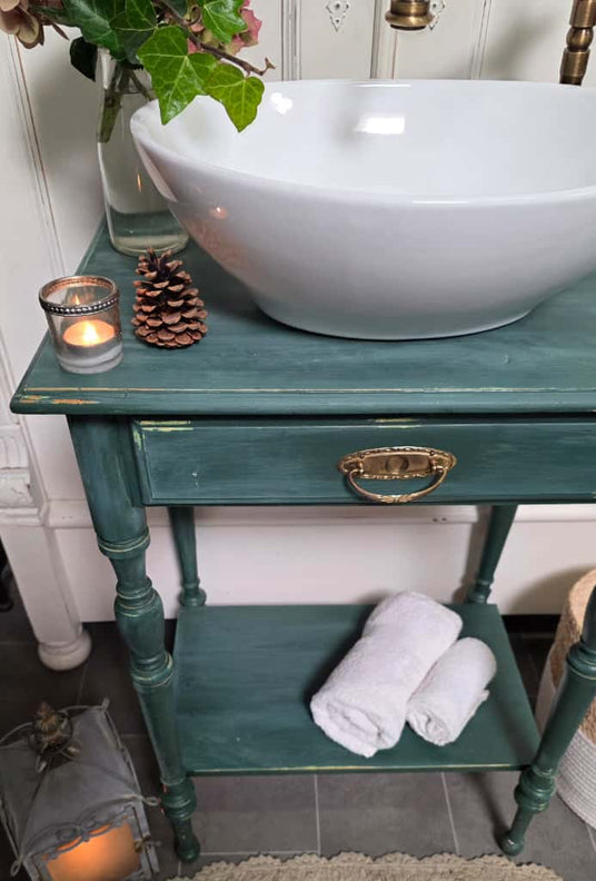 Unser Waschtisch ist ein echtes Unikat. Ursprünglich als antike Kommode zu uns gekommen, wurde sie in unserer Manufaktur zu einem echten vintage Waschtisch umgewandelt. Dabei achten wir besonders darauf, die Geschichte der Kommode zu bewahren. Um den nostalgischen Vintage-Charme zu erhalten, haben wir nicht alle Gebrauchsspuren und Abnutzungsspuren entfernt. So bleibt die besondere Geschichte jedes Stücks lebendig.