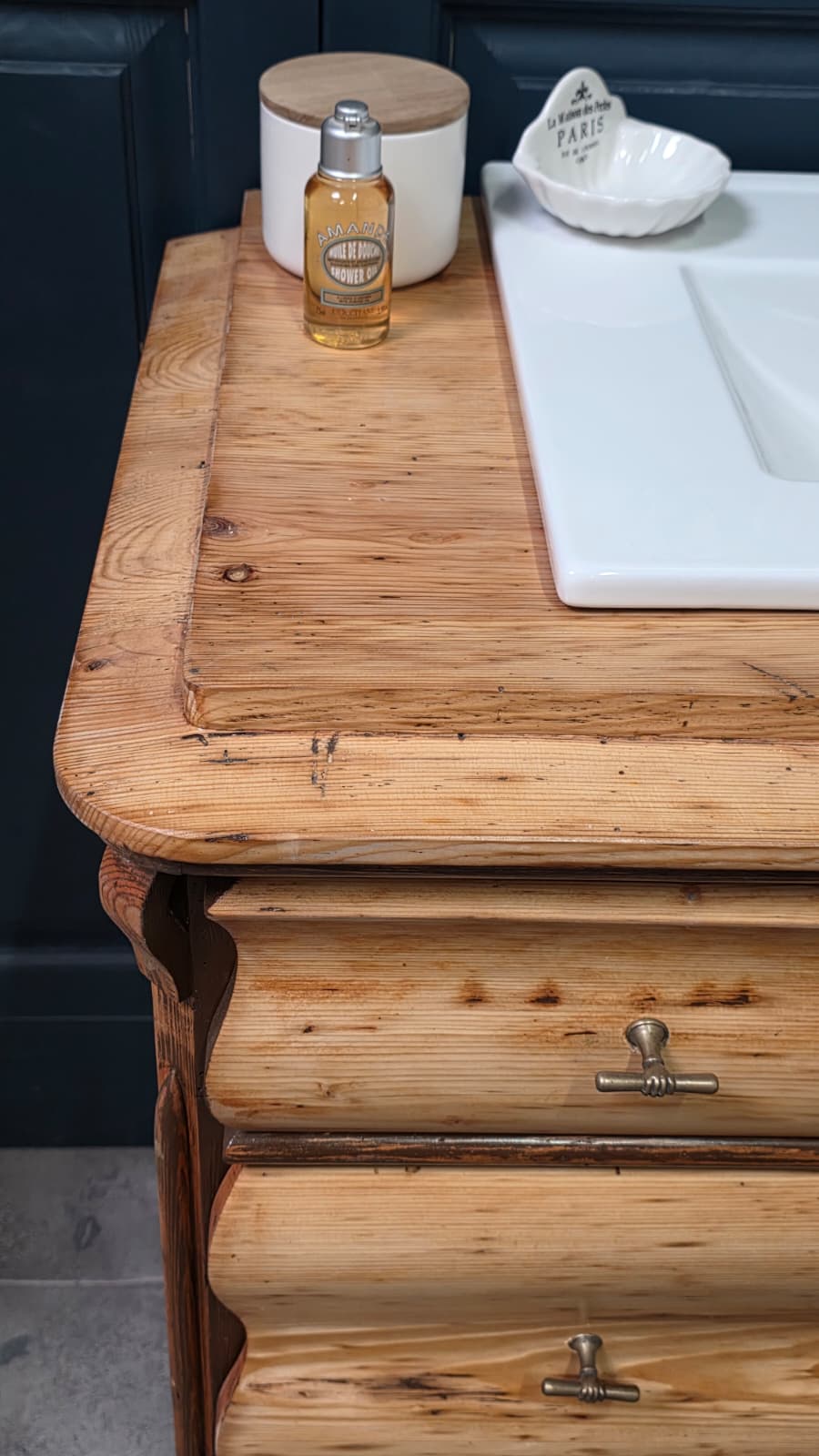 Damit der Waschtisch optimal im Badezimmer genutzt werden kann, versiegeln wir die Oberfläche wasserabweisend. So bleibt er nicht nur schön, sondern auch funktional.