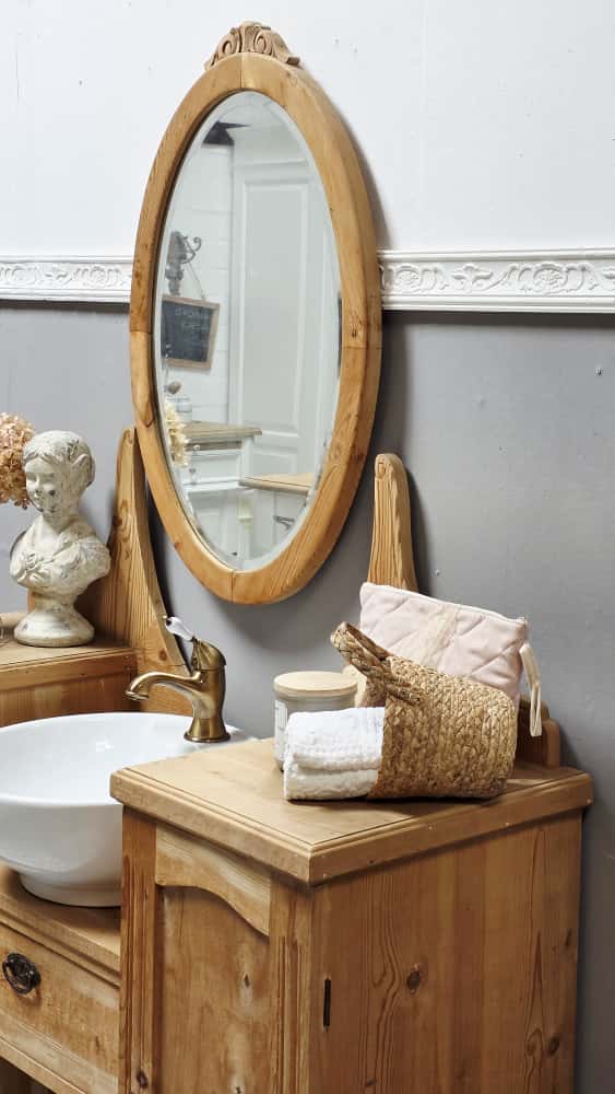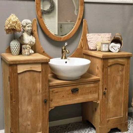 Mit dieser dänischen Schönheit zaubern Sie Nostalgie, Wärme und Eleganz in Ihr Badezimmer. So erweist sich dieser ehemaliger Schminktisch als Ordnungshüter und besonderer Blickfang, der seinen Charme aus der Vergangenheit schöpft. Mit reizvoller Maserung, markanten Nuancen und dezenter Ornamentik, versteht er es meisterlich die Schönheit von natürlichem Holz und Nostalgie zu präsentieren und entführt mit seinem noblen Charme in den Stil eines englischen Herrenhauses.