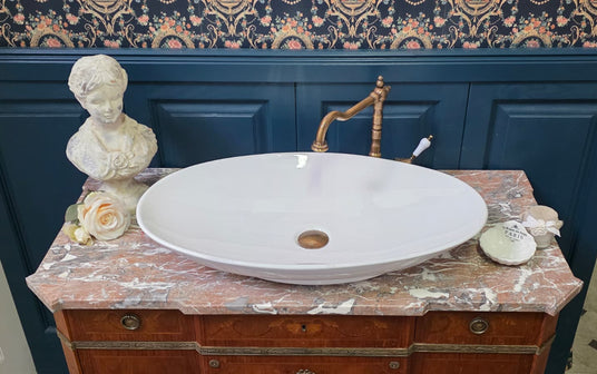 - Das elegante Waschbecken verbindet harmonisch Moderne mit Nostalgie und ist im Preis inklusive, es kann auf Wunsch jedoch auch ausgetauscht werden.