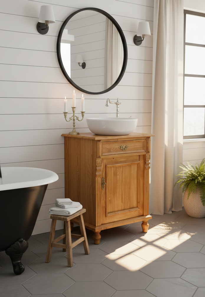 - Das elegante Waschbecken verbindet harmonisch Moderne mit Nostalgie und ist im Preis inklusive, es kann auf Wunsch jedoch auch ausgetauscht werden.