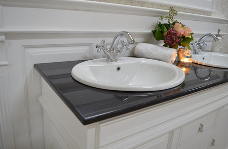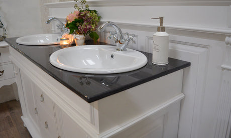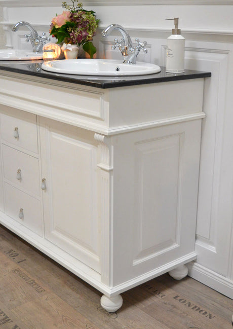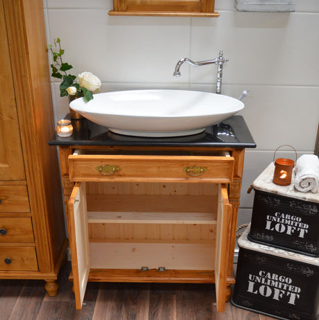 €698,00Grundpreis /Nicht verfügbar "Wyn" -Landhaus-Waschtisch mit schwarzer Granitsteinplatte 80 cm