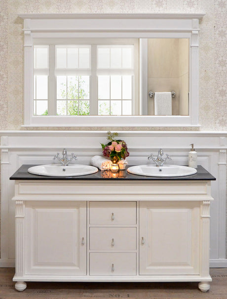 Ein nostalgischer Waschtisch erweckt Sehnsüchte nach vergangenen Zeiten und lässt unsere Vorstellungen mit Erinnerungen verschmelzen. Nostalgie äußert sich beim Waschtisch besonders beim Holz hinsichtlich der Verzierungen und Nuancen, welche direkt sichtbar werden.