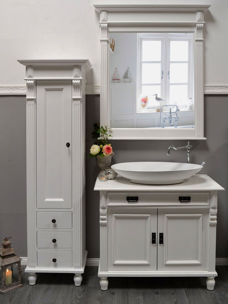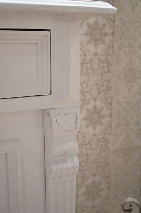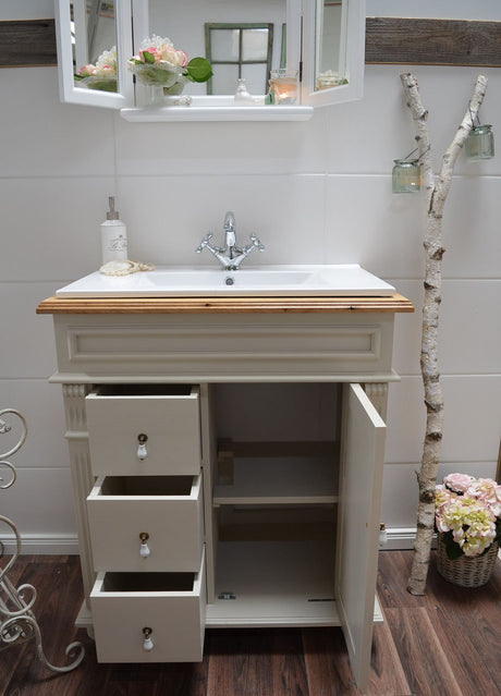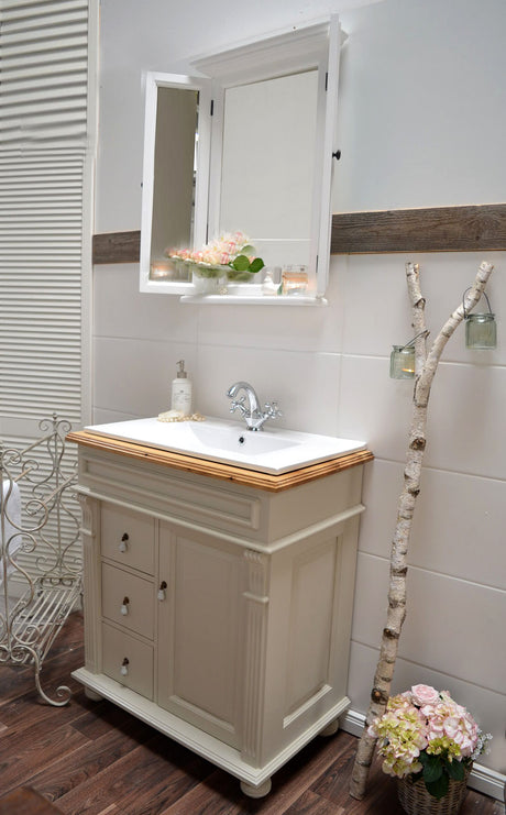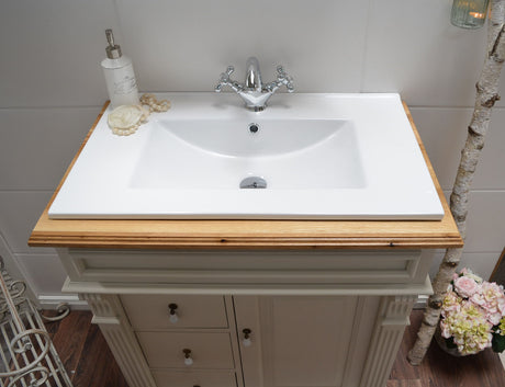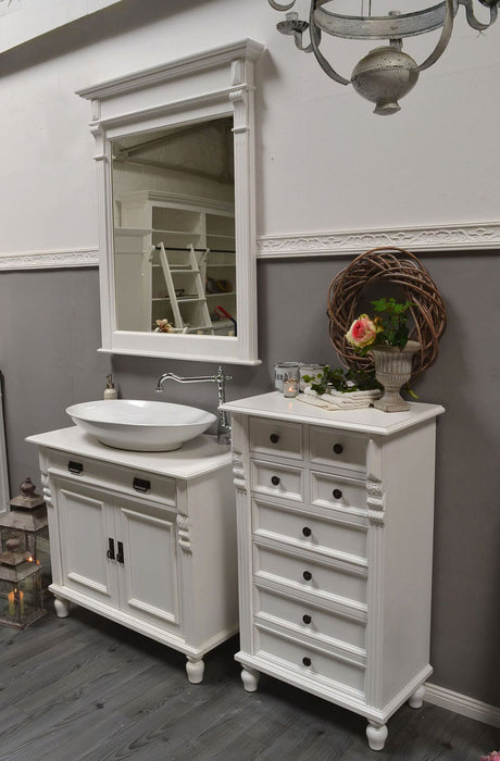 €798,00Grundpreis /Nicht verfügbar "Toulon" weiße Waschkommode im Landhausstil mit Aufsatzwaschbecken 80/90 cm