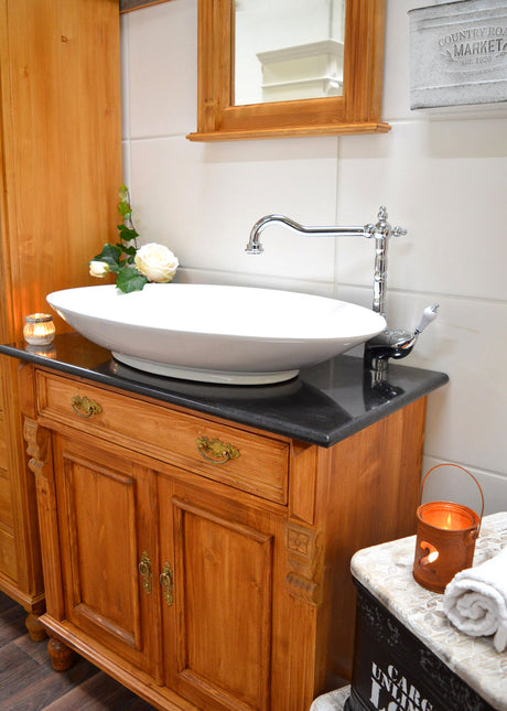 €2.959,00Grundpreis /Nicht verfügbar"York" Massive Landhaus-Waschkommode mit Eichenplatte 83 cm