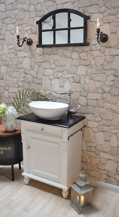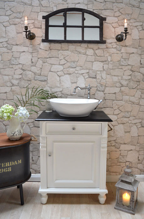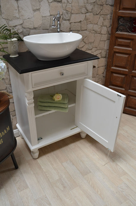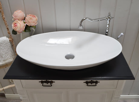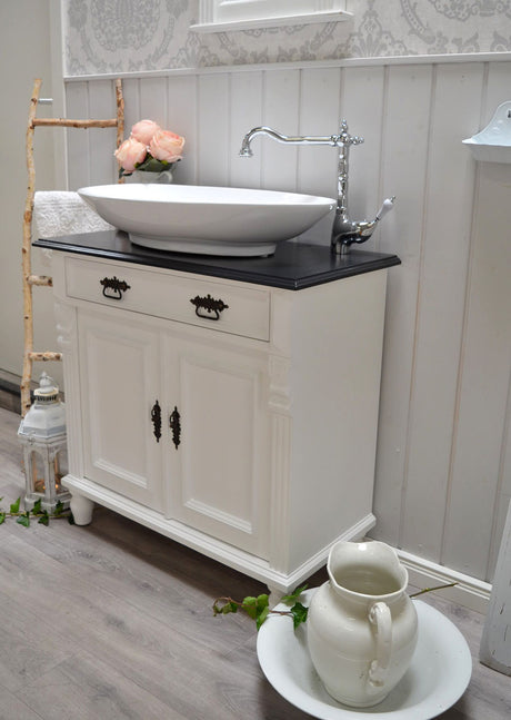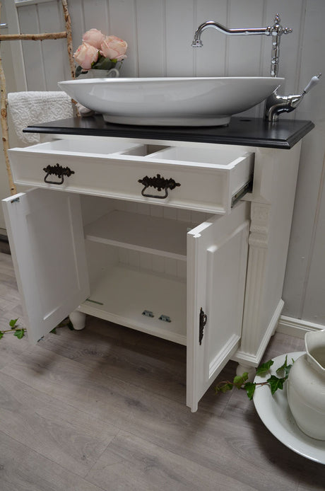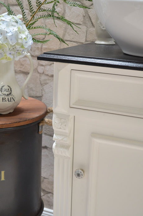 €1.395,00Grundpreis /Nicht verfügbar"Océane" Landhaus-Waschtisch schwarz-lackierte Tischplatte 80 cm
