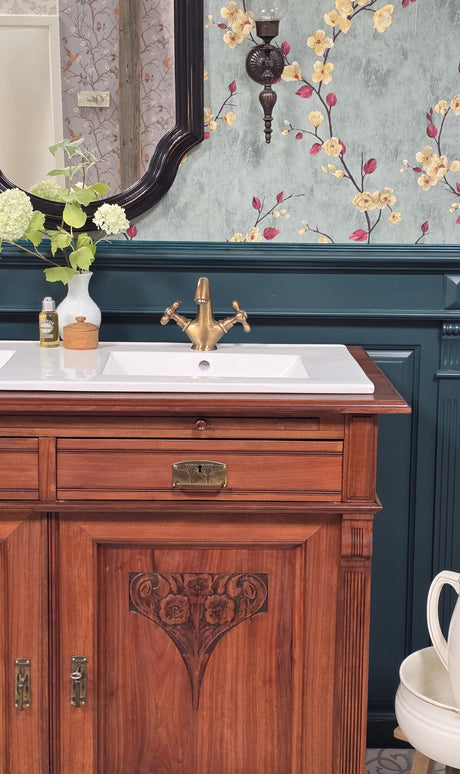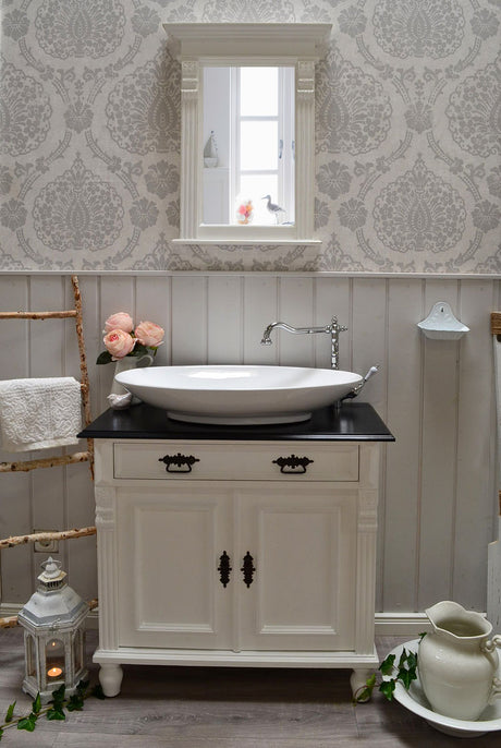 Ein nostalgischer Waschtisch erweckt Sehnsüchte nach vergangenen Zeiten und lässt unsere Vorstellungen mit Erinnerungen verschmelzen. Nostalgie äußert sich beim Waschtisch besonders beim Holz hinsichtlich der Verzierungen und Nuancen, welche direkt sichtbar werden.
