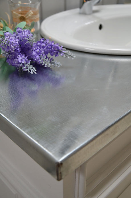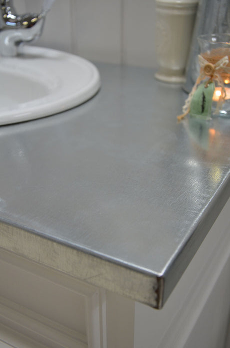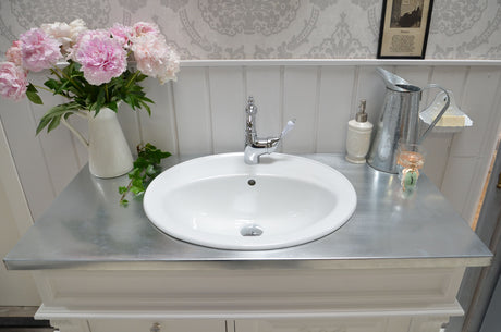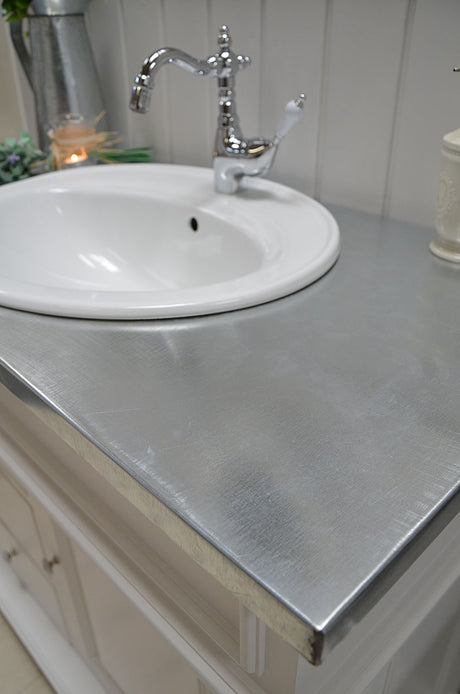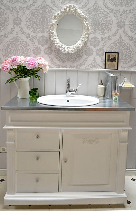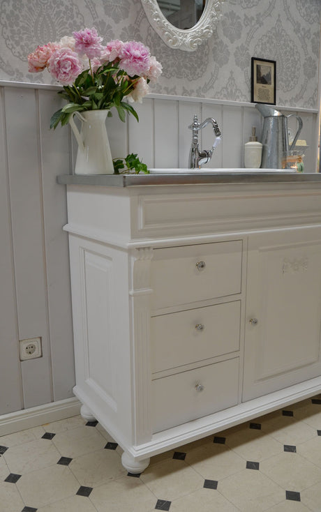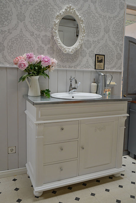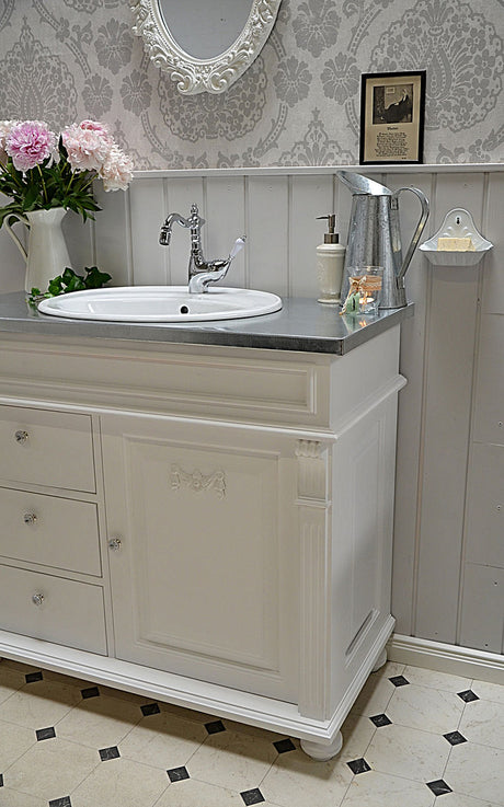 €1.269,00Grundpreis /Nicht verfügbar "Sioné" weißer Landhaus-Waschtisch mit Zinkplatte 103 cm