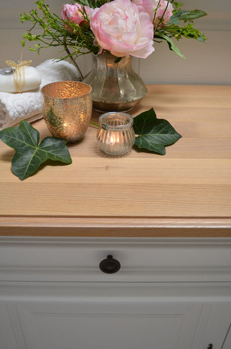 €1.439,00Grundpreis /Nicht verfügbar"Sèvre" Landhaus-Waschtisch mit Eichenplatte und Handtuchstange 60 cm
