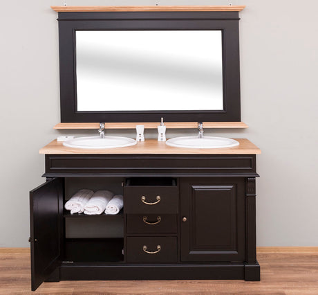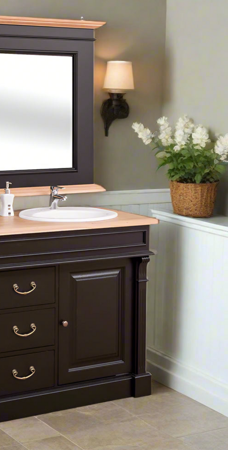 Aus dem antiken Buffet wurde letzte Woche noch ein ganz besonderes schöner Waschtisch- ein Blickfang für das besondere Landhaus Badezimmer, mit dem Chic und Charme einer längst vergangenen Epoche.