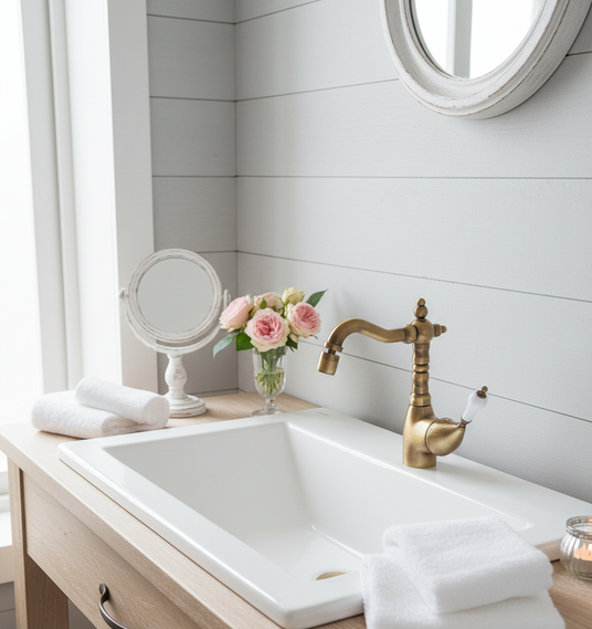 Mosel bronze groß - Armatur im Messing-Antik-Look, Einhebelmischer Bronze im Landhausstil