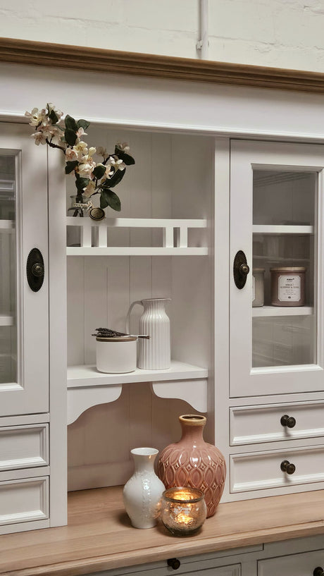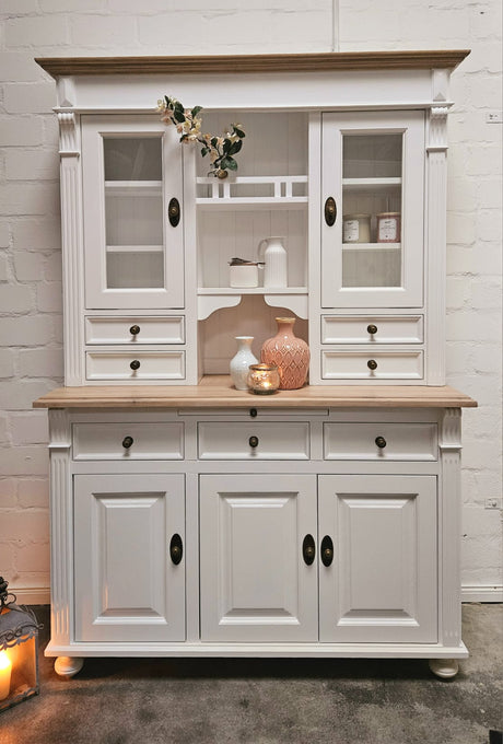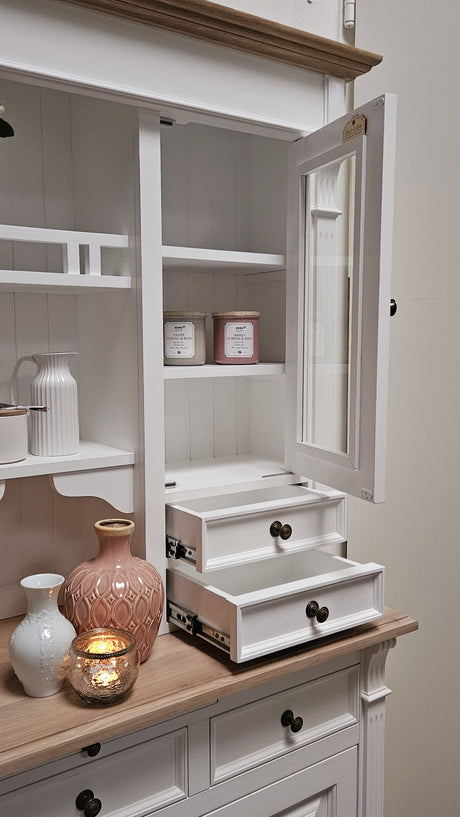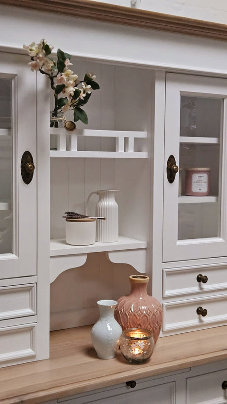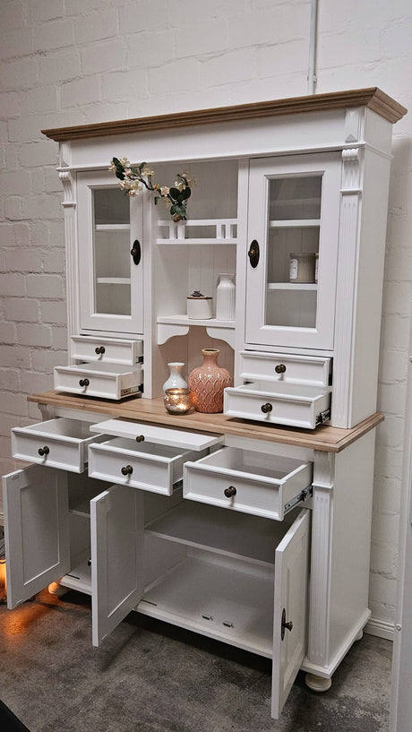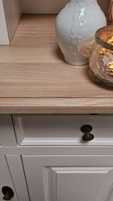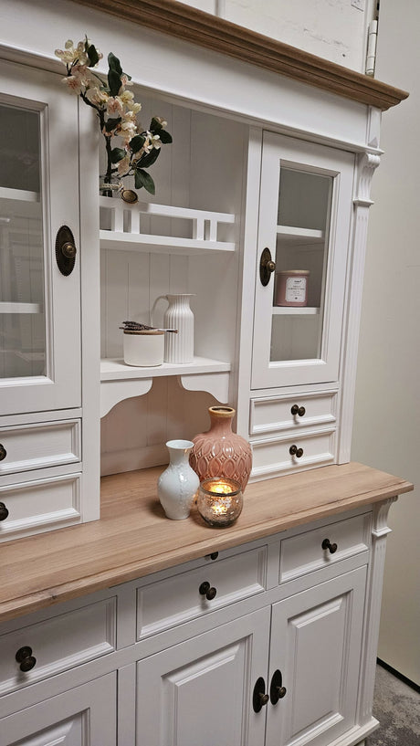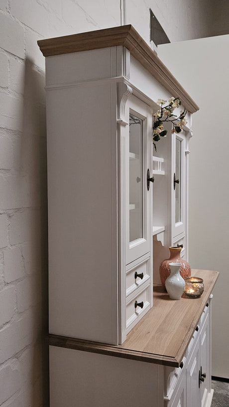 €2.169,00Grundpreis /Nicht verfügbar"Elana" - Landhaus-Buffet, Landhaus Vitrine mit Eichenplatte 138 cm