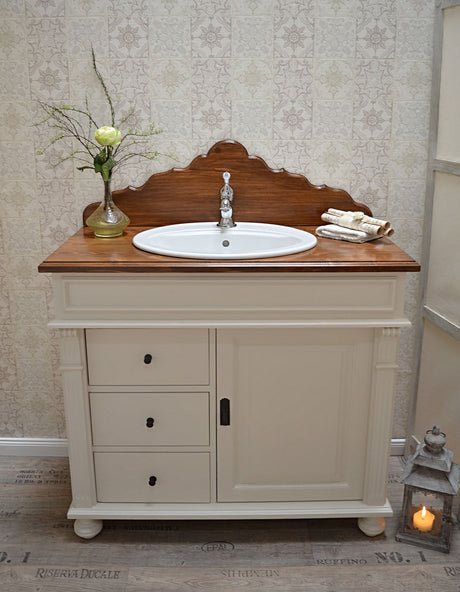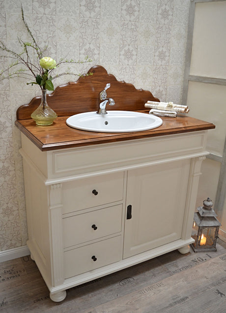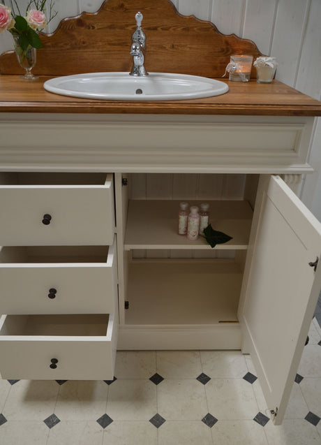 "Abbée" Landhaus-Waschtisch in creme mit Aufsatz 103 cm