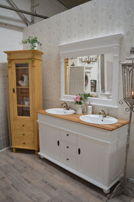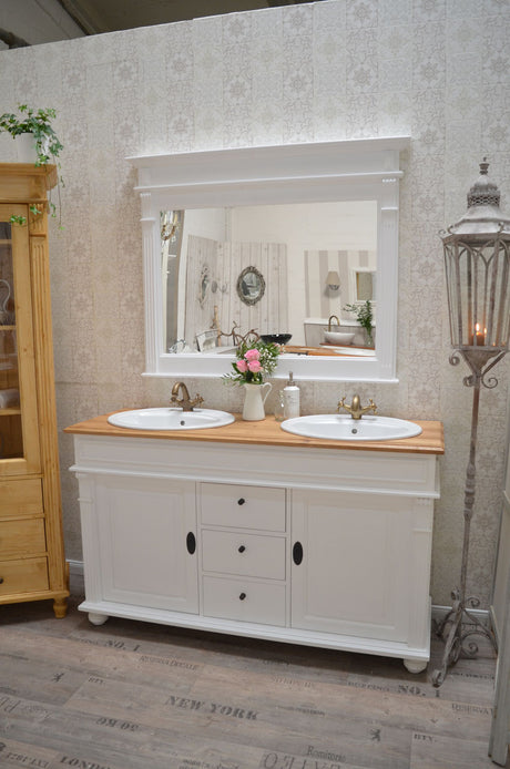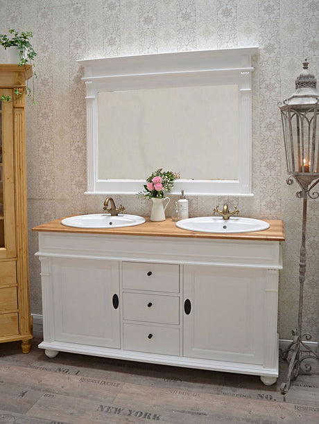 €1.299,00Grundpreis /Nicht verfügbar "Adeline" Landhaus-Doppelwaschtisch mit Eichenplatte im Chippendale-Stil 150 cm