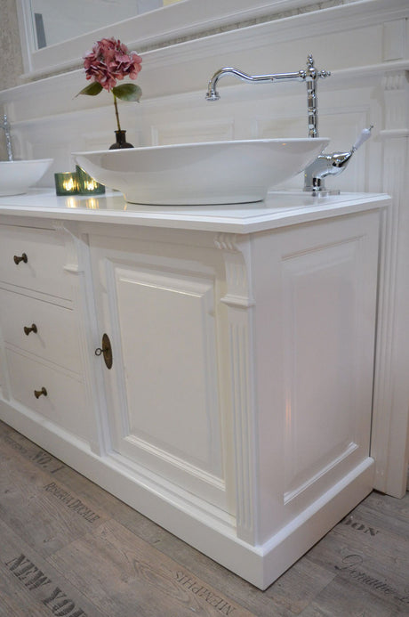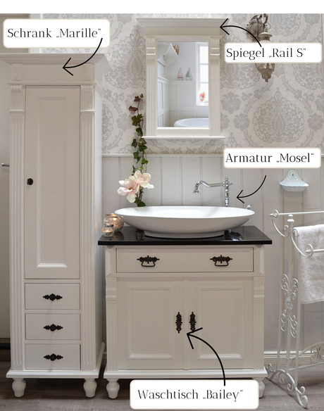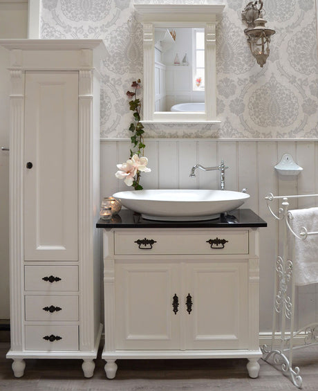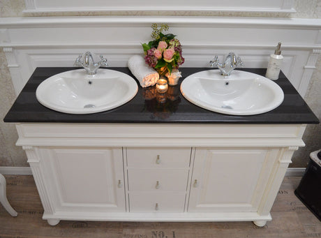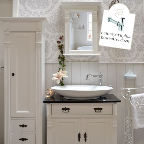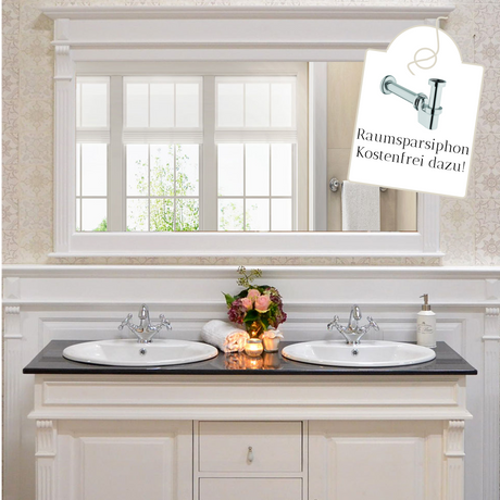 Badmöbel-Set Landhausstil weiß - Waschtisch mit Granitsteinplatte