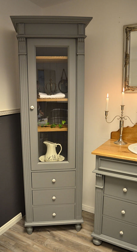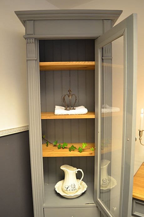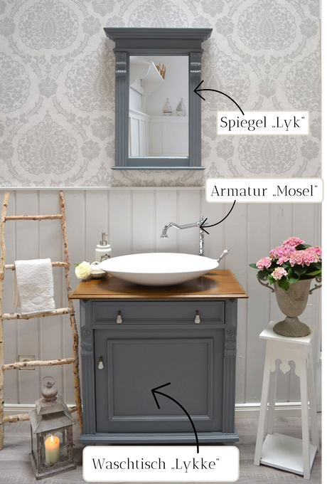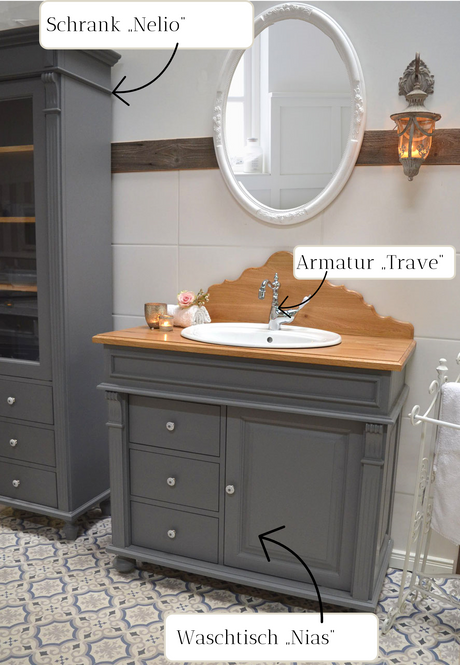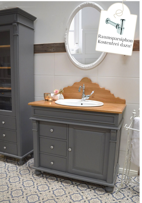 Blau-graue Badezimmermöbel im Set - Kleines Bad im Landhausstil