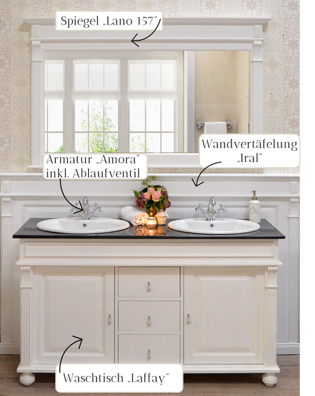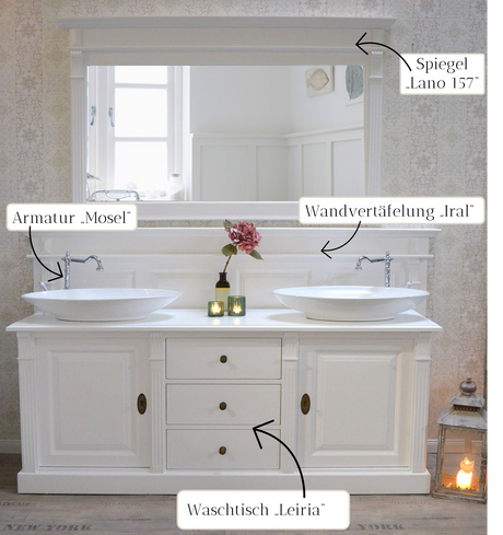 Weißes Badmöbel-Set im Landhausstil mit Doppelwaschtisch