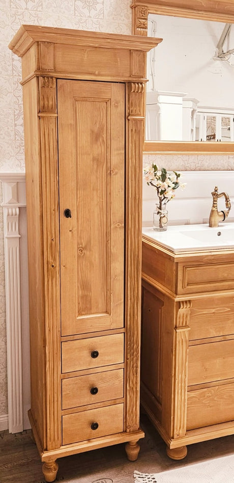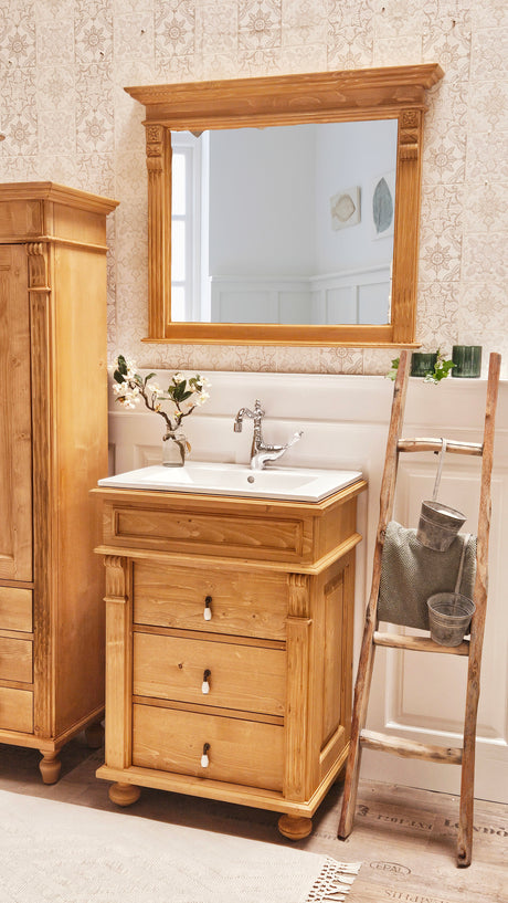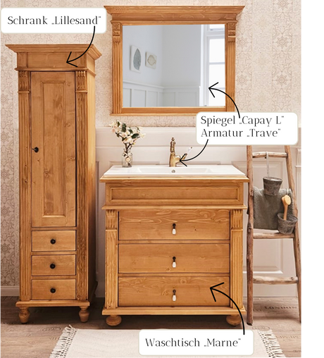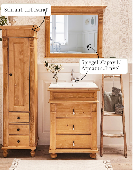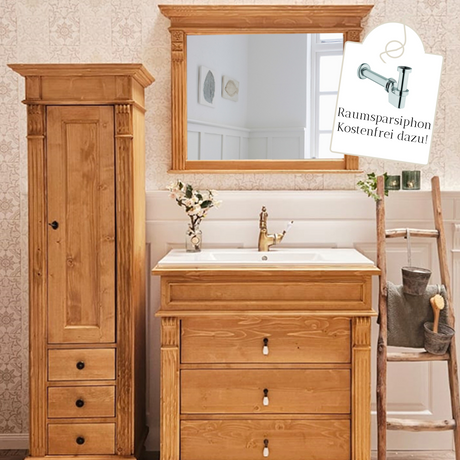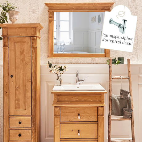Natur Landhaus-Badmöbel-Set aus Massivholz mittel
