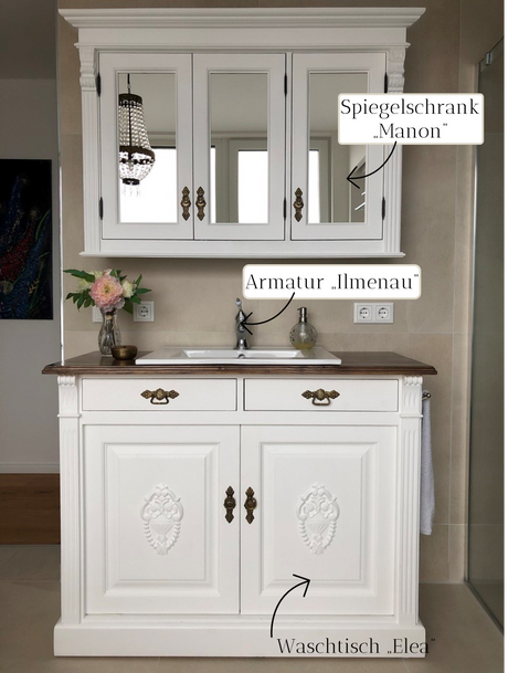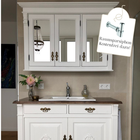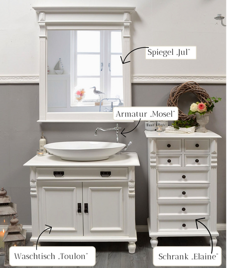 Landhaus Badmöbel im Set - weißes Massivholz