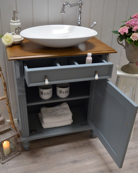 Badmöbel-Set im Landhausstil in blau-grau