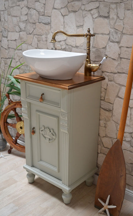 Kleines Badezimmermöbel-Set in mint - Gästebad Landhausstil
