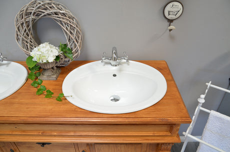 €2.259,00Grundpreis /Nicht verfügbar"Almerá" Doppelwaschtisch im Landhausstil mit heller Eichenplatte 150 cm
