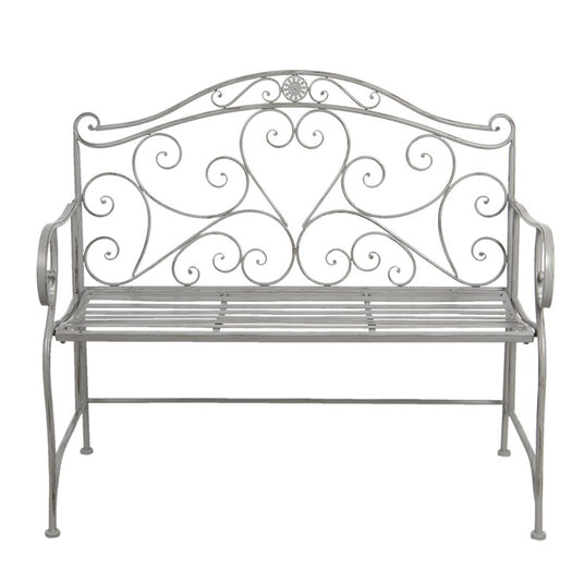 Ein bezaubernder Blickfang bietet diese nostalgisch anmutende Gartenbank- unterm schattigen Apfelbaum arrangiert oder als Willkommensgruß am Eingang eingesetzt, hier lässt sich der Feierabend wunderbar ausklingen oder, je nachdem, mit einem Café die ersten Sonnenstrahlen genießen. Das Eisen nimmt mit der Zeit eine wunderbare Patina an und wirkt somit wie aus den Gärten der Nostalgie in Frankreich.