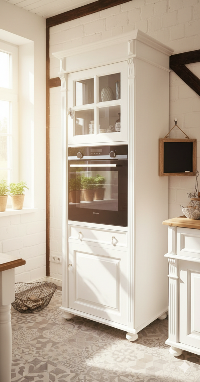 The country house style oven cabinet is not only a functional part of the kitchen, but also an eye-catcher that enriches the ambience of the room.