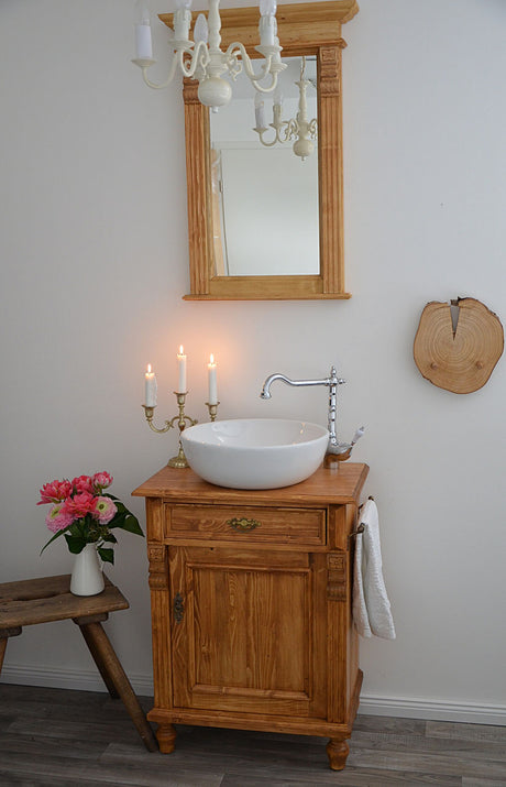 €1.339,00Grundpreis /Nicht verfügbar"Mirandé" heller Landhaus-Waschtisch aus Massivholz mit Handtuchstange 60 cm