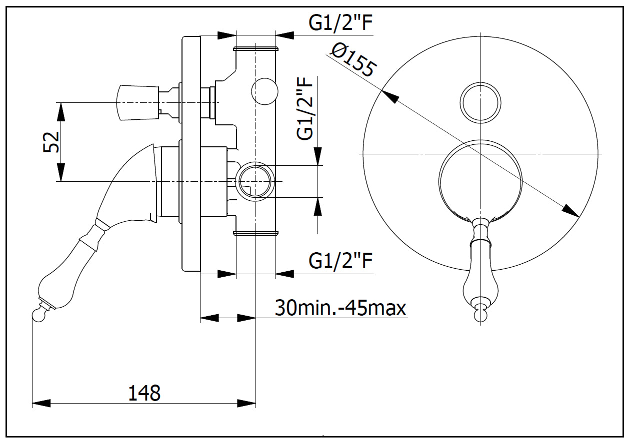 Do you need matching shower and bath mixers for your nostalgic basin mixers? We have put together the necessary lever mixers and handles for you, but are unable to offer a complete range of rain showers, shower and bath drain systems etc.. However, the mixers can be combined with commercially available rain showers, shower hoses, etc.