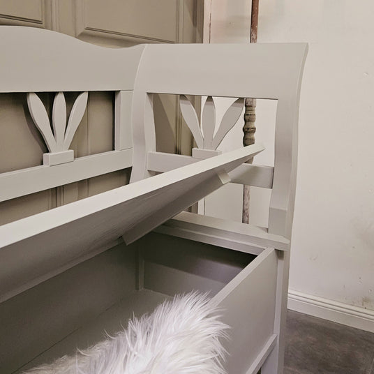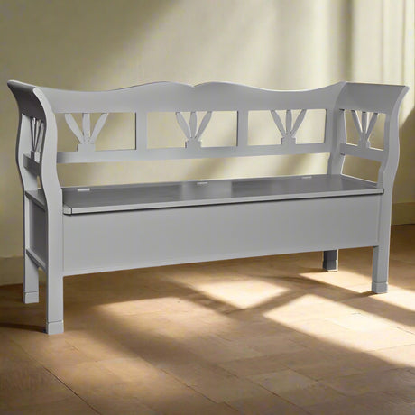 €998,00Grundpreis /Nicht verfügbar"Lenon blanc" - Massivholzbank mit Truhenfach unter der Sitzfläche