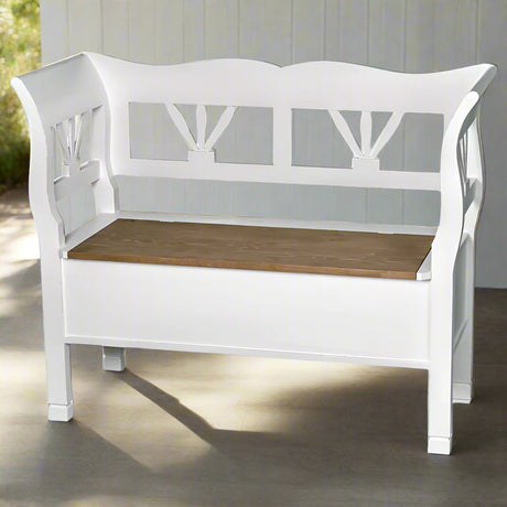 €219,00Grundpreis /Nicht verfügbar"Lenon bois" - Massivholzbank mit Truhenfach in weiß mit Naturholz