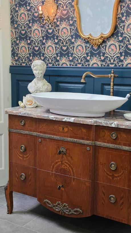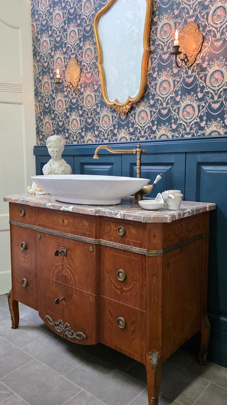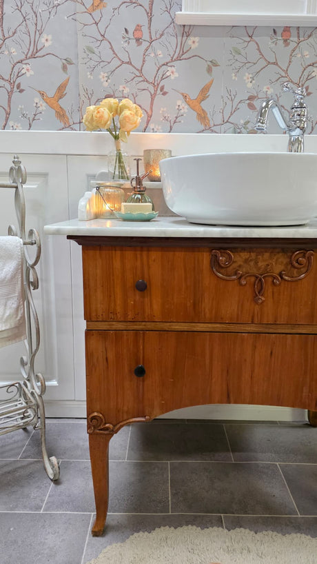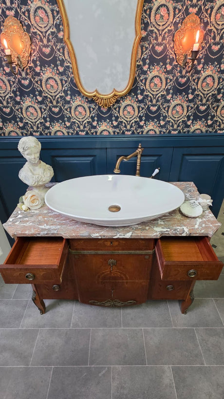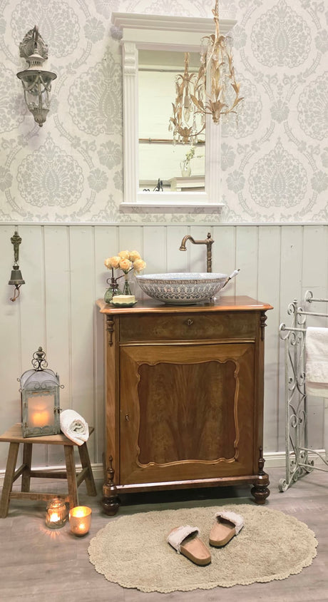 The appearance of vintage bathroom furniture creates a very special flair and experience in your bathroom. At the sight of these vintage washbasins made of solid wood, you and your guests will be transported back in time. This not only makes the bathroom a real eye-catcher, but also takes you on a daily journey back in time.