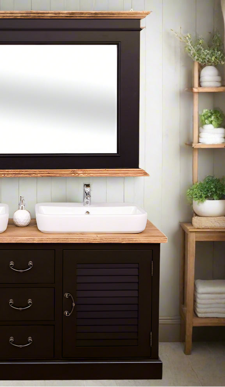 €935,00Grundpreis /Nicht verfügbar"Skoja" - Doppelwaschtisch im modernen Landhausstil mit Aufsatzbecken| PURE-Serie von L&L
