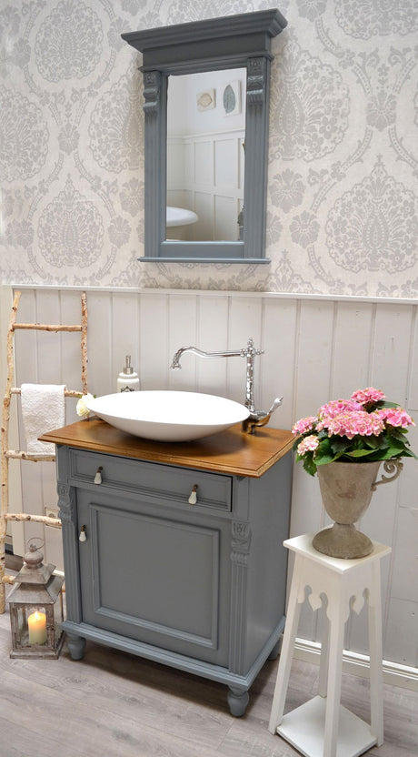€1.795,00Grundpreis /Nicht verfügbar"Camille" weißer Landhaus Waschtisch mit Aufsatzwaschbecken 80/90 cm