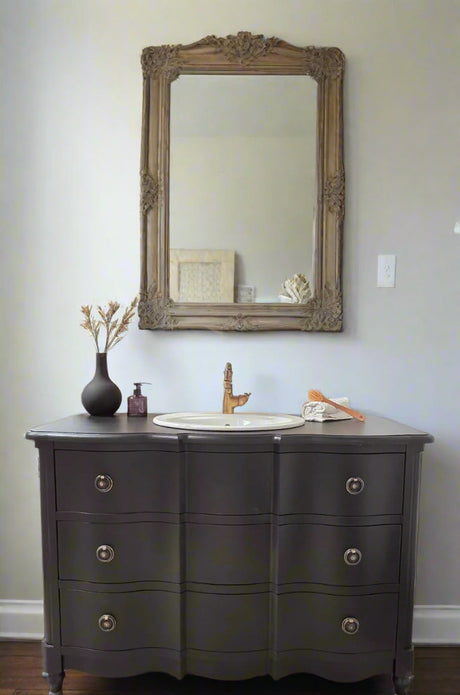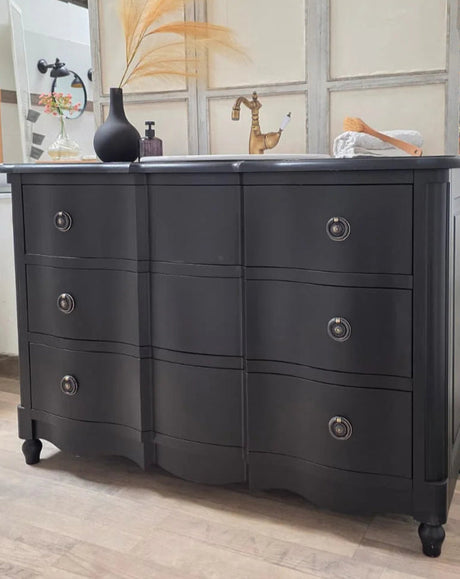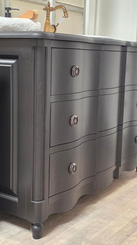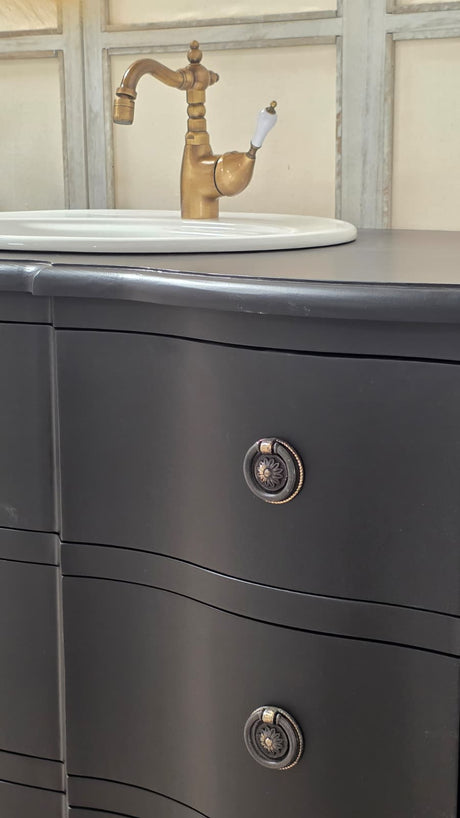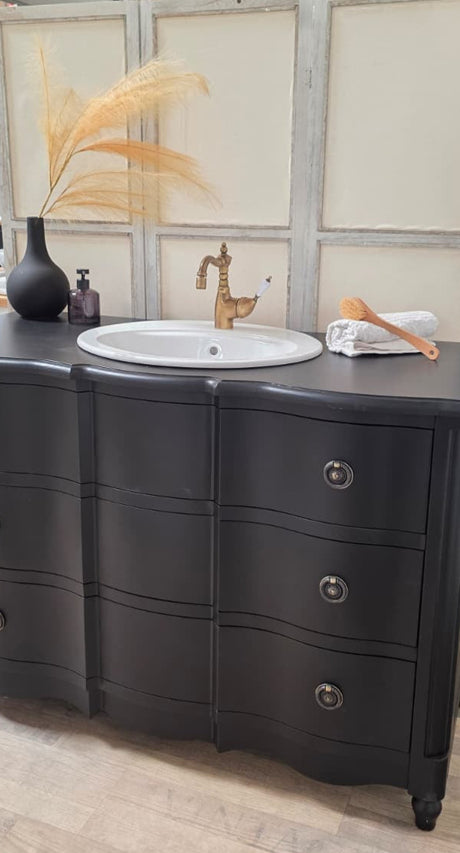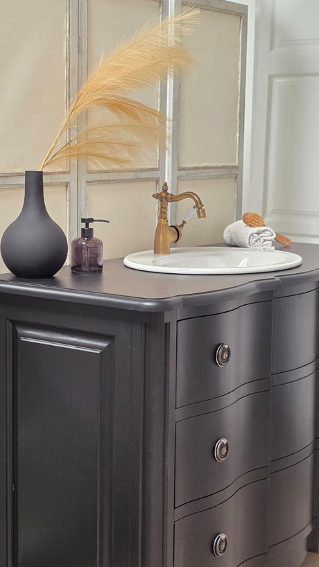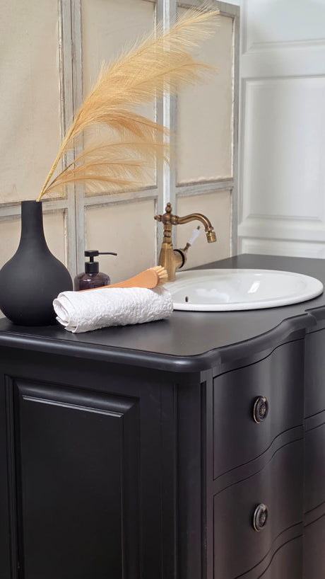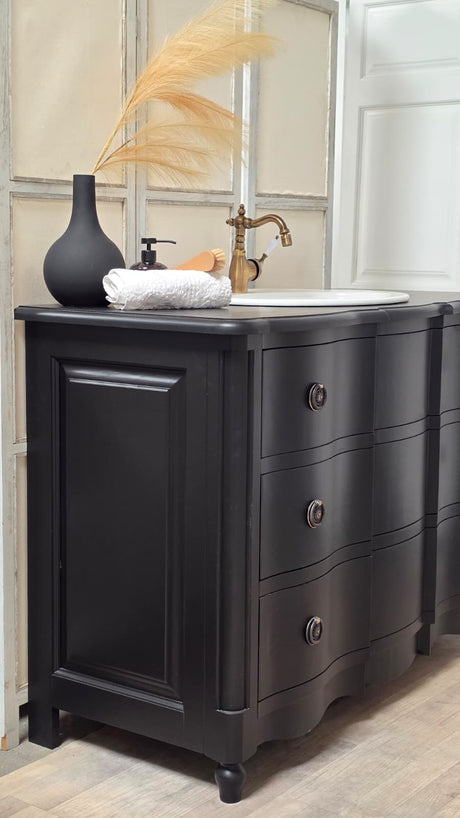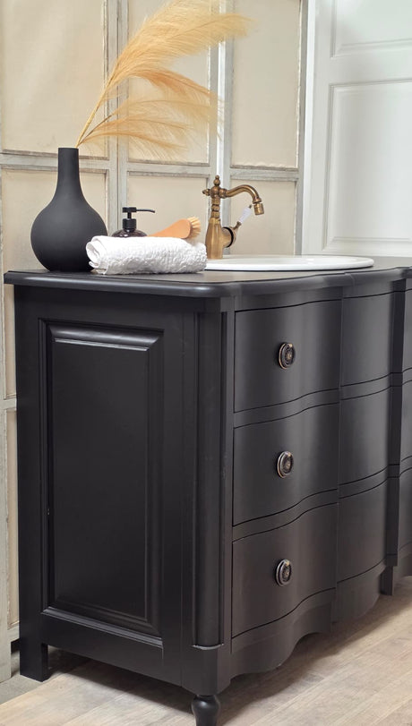 Black vanity top, black carcass or all black? Just as you like it! Black bathroom furniture provides a wonderful contrast to the white tiles in most bathrooms. They enhance plain bathrooms immensely and are a very individual eye-catcher. In principle, we can paint almost any chest of drawers black on request.