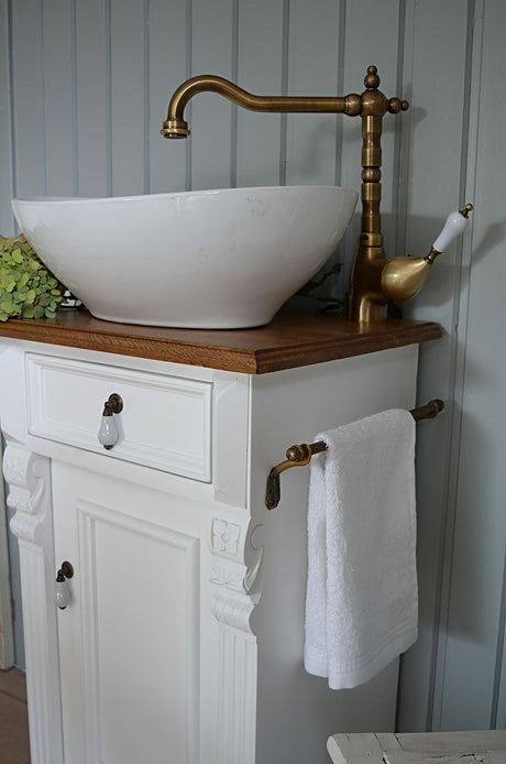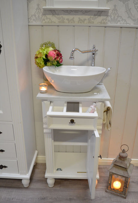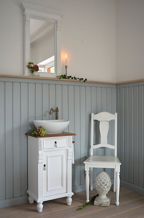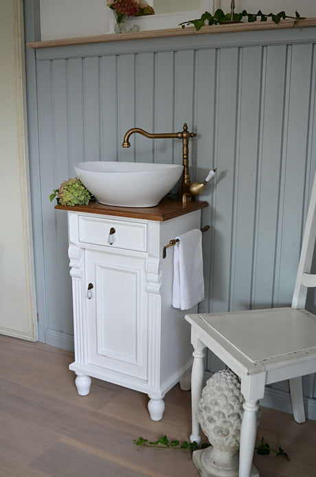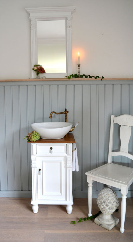 Unsere kleinsten Waschtische sind nicht nur für Ihr Gästebadezimmer im Landhausstil geeignet, sondern verleihen auch kleinen Vollbädern einen ganz besonderen Charme! Sie werden sogar richtige Winzlinge hier finden, die auch ins kleine Gäste-WC noch passen.