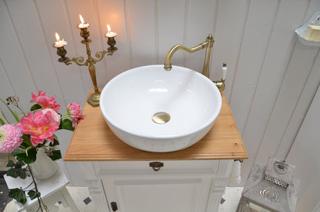 A bathroom with a maritime design is characterized above all by its bright, mostly white and blue colour schemes. For vacation lovers who want to bring the feeling of the beach and the sea into their home, we offer washbasins in a maritime country house style, which will turn your very own dream bathroom into a real eye-catcher.