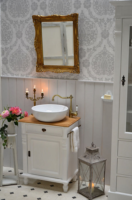 €1.795,00Grundpreis /Nicht verfügbar"Loutrice" kleiner, weißer Landhaus-Waschtisch im romantischen Stil 53 cm