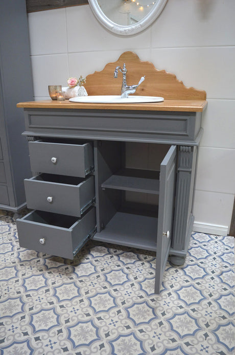 €929,00Grundpreis /Nicht verfügbar"York" Massive Landhaus-Waschkommode mit Eichenplatte 83 cm